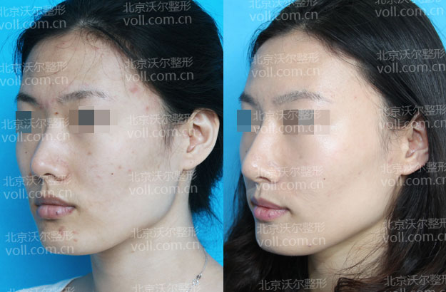 我的鼻子正面看比较低,也有点宽,还有点歪歪的,有这样的鼻子真是伤不起啊~~很久以前就想做手术了,但妈妈一直都不同意,说我还小,骨骼还没完全成好,说不定哪天鼻子就会变挺了呢,我的鼻子就这样过了几个年头。现在长大了,爱美的心也越来越强烈了,对妈妈软磨硬泡后来到北京沃尔整形医院做了鼻整形手术。对于手术后的感受啊,我印象最深的就是整个脸肿得很厉害,都不敢出门,拆线时脸也还是肿的,当时也不知道啥时候能彻底恢复。不过现在你看看,鼻子是变高了吧,是不是漂亮好多,真是没白受那几天的苦,爱死现在的自己了~