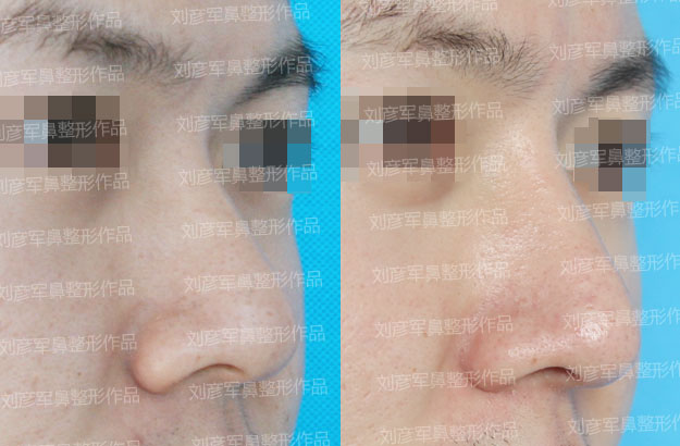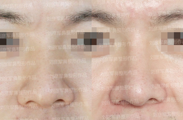 术前检查:鼻根低、鼻骨宽大、鼻头肥大