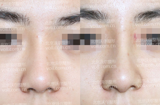 术前检查:鼻梁低、鼻头肥大、鼻翼肥厚,宽鼻 歪鼻
