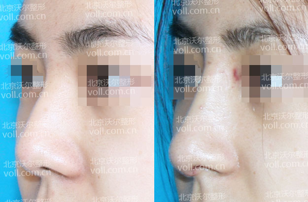 术前诊断:低鼻、鼻头肥大、鼻翼肥厚 宽鼻歪鼻