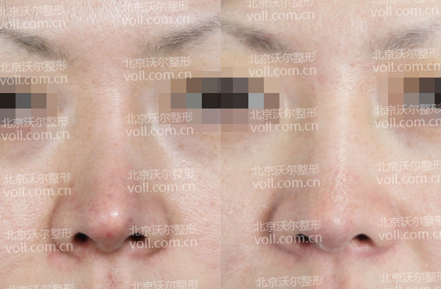 手术目的:膨体隆鼻术改善低鼻形态,鼻中隔软骨鼻尖成形术改善鼻尖形态抬高延长鼻尖,面颊部吸脂术改善面颊部脂肪堆积,使鼻部在面部显得立体,美观。