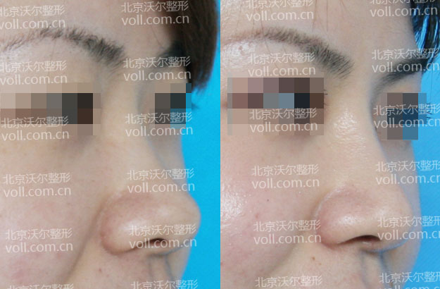 术前检查:鼻梁低,鼻小柱后缩 鼻头肥大