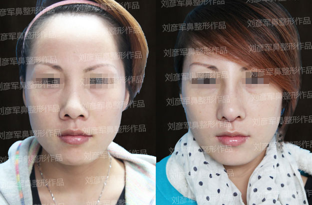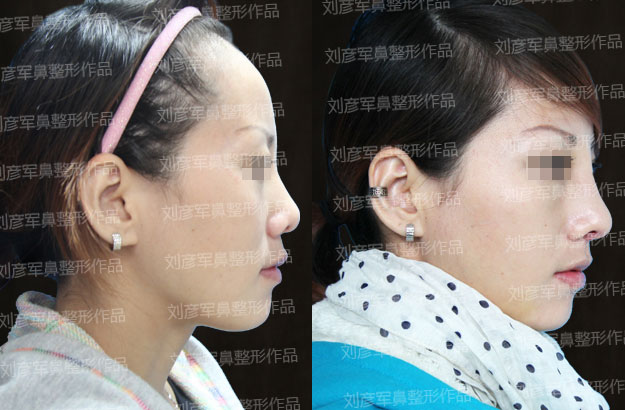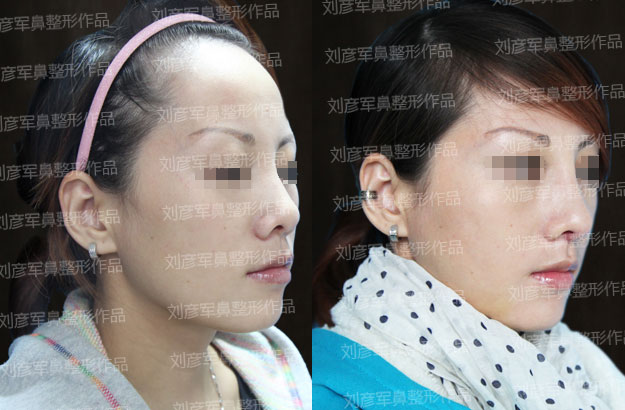 术前情况:假体透光 鼻小柱退缩 宽鼻